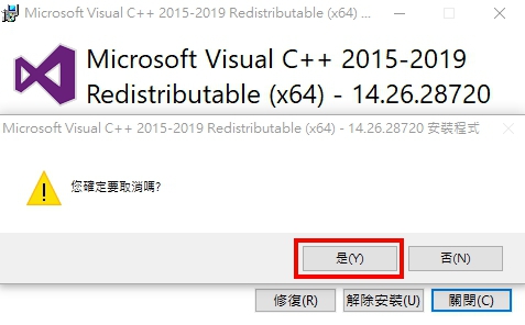 4. 點擊「是」確認取消, 即關閉安裝畫面